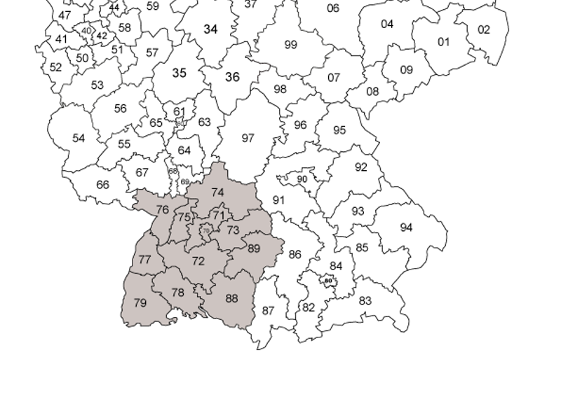 PLZ-Gebiete 70-79,88,89