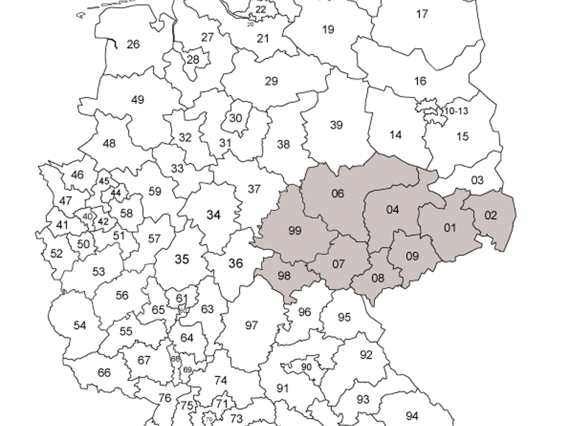 PLZ-Gebiete 01,02,04,06,07,08,09,98,99