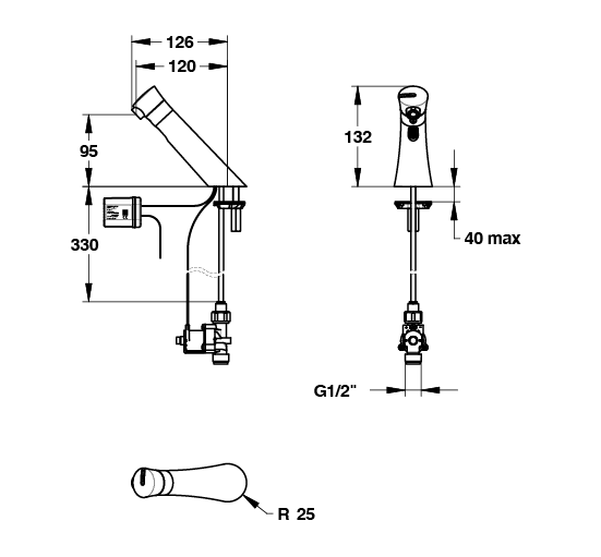 Deck-mounted sensor and timed-flow single tap, external, mains-operated, 1.7l/min